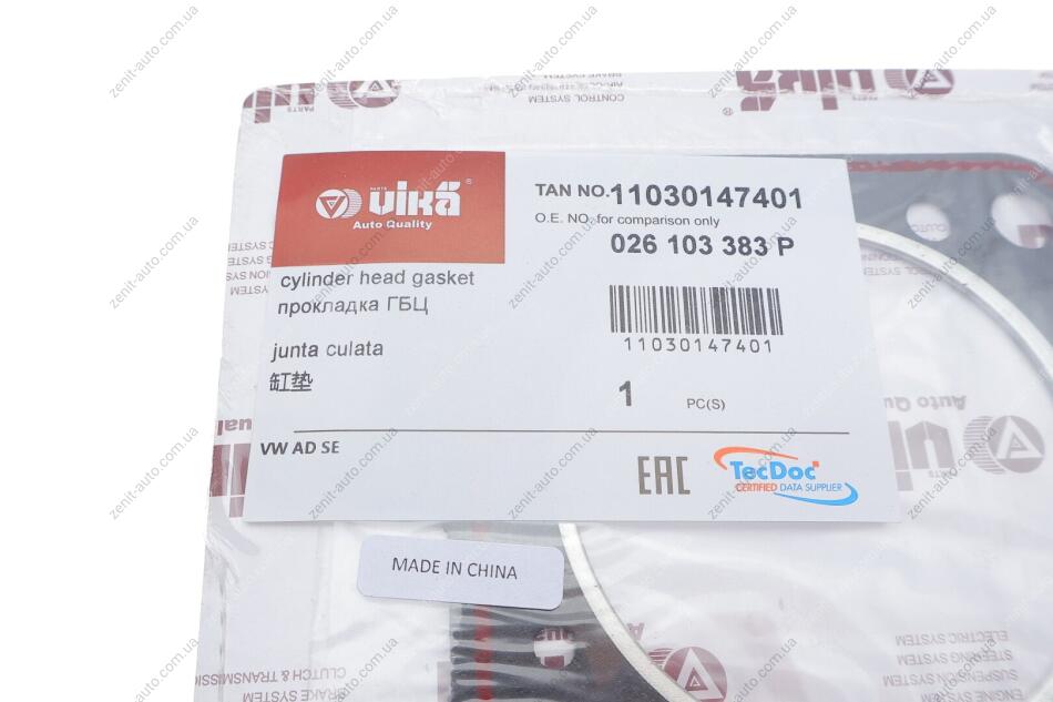 Прокладка головки (асбест) VW Golf (82-98),Jetta (82-92),Passat (82-97)/Audi 100 (83-93),80 (82-96) Vika 11030147401
