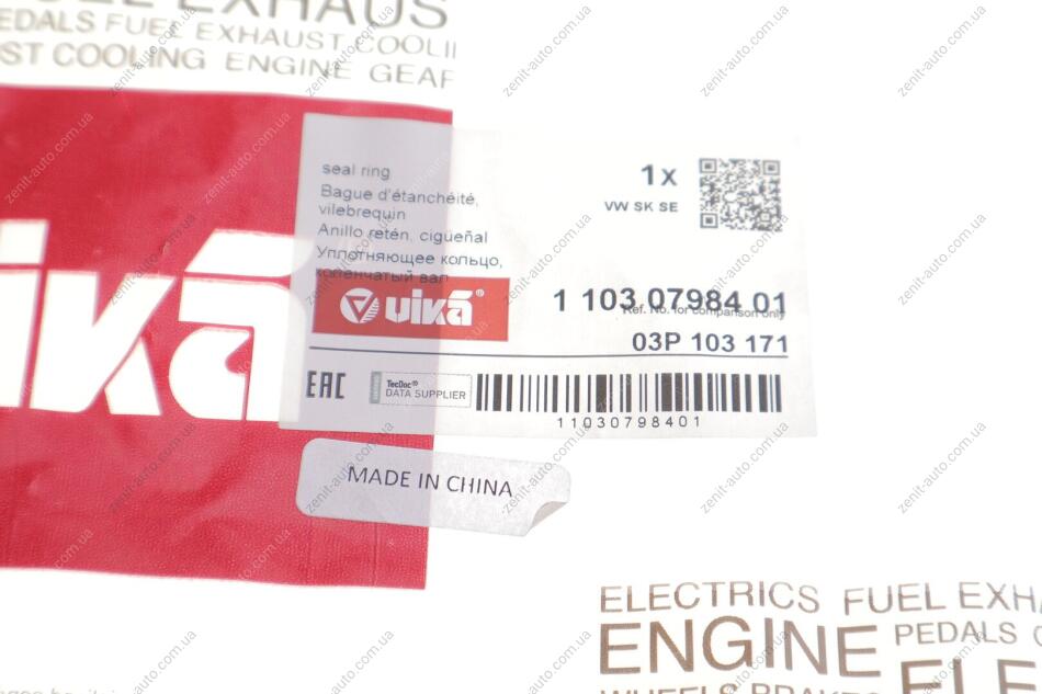 Сальник коленвала задний с крышкой Skoda Fabia (11-15),Fabia10-14,Roomster (11-)15/VW Polo (10-15)/Seat Ibiza (09-15) Vika 11030798401