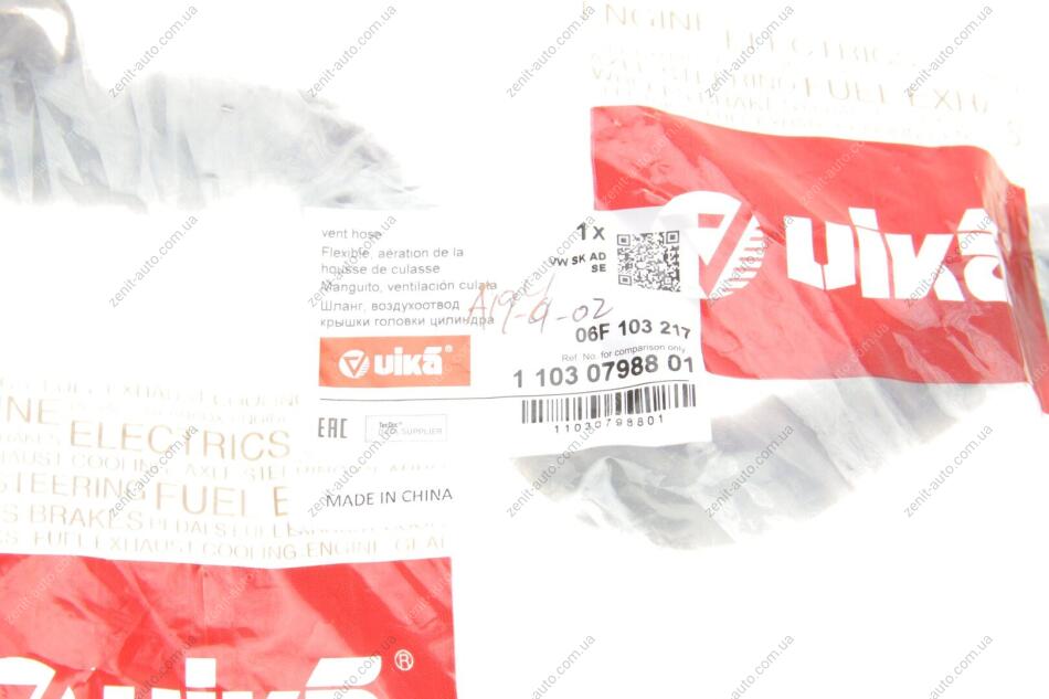 Патрубок вентиляция картерных газов Skoda Octavia (04-08)/VW Golf (04-09),Jetta (06-11),Passat (06-11)/Audi A3 (04-08) Vika 11030798801