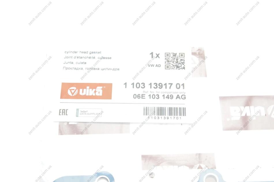 Прокладка головки (металл) VW Touareg (11-)/Audi A4 (08-),A6 (11-),A7 (11-),A8 (10-13),Q5 (13-),Q7 (10-) Vika 11031391701