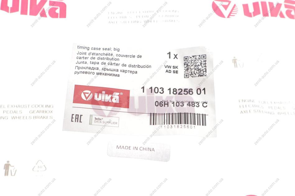 Прокладка передней крышки (большая) VW Golf (04-09,09-13),Tiguan (07-),T5/Audi A4 (07-15),A6 (11-),Q5(08-) Vika 11031825601