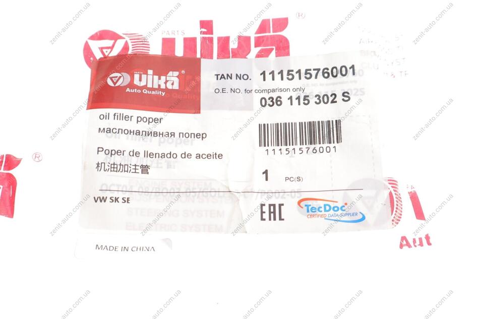 Патрубок маслозаливной Skoda Octavia (04-08)/VW Golf (03-07),Polo (02-05)/Seat Leon (02-06),Toledo (02-06) Vika 11151576001