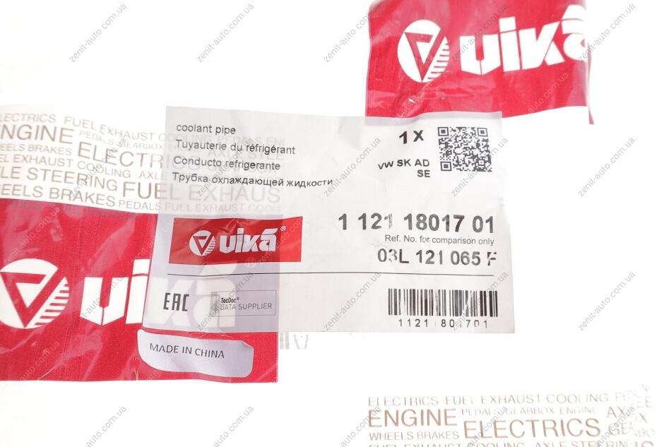 Патрубок охлаждающей жидкости железный Skoda Fabia (11-15),Octavia (09-13)/VW Golf (09-11),Jetta (06-10),Passat (09-11) Vika 11211801701