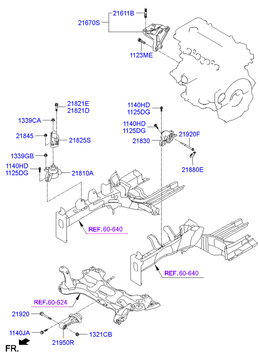 (Рабочий объем двигателя: 2000 CC - NU) Подвеска двигателя и коробки передач (Рабочий объем двигателя: 1600 CC - GAMMA) |