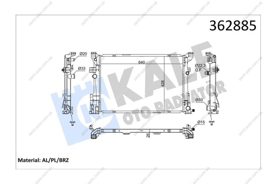 Радиатор охлаждения двигателя (паяный) MB A-Class (13-), B-Class (12-)/Infiniti Q30 (15-) 7 speed DCT OTO RADYATOR Kale '362885