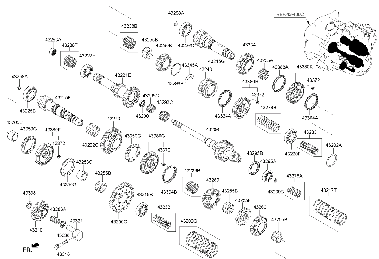 (Рабочий объем двигателя: 1600 CC - GAMMA)(Двигатель: DOHC - GDI)(АКП: DCT - 6 SPEED 2WD) Шестерни механической КП (01/02) (Рабочий объем двигателя: 1600 CC - GAMMA)(Двигатель: DOHC - GDI)(АКП: DCT - 6 SPEED 2WD) |