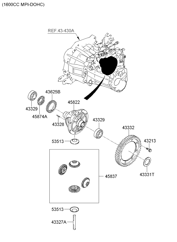 (Рабочий объем двигателя: 1600 CC - U2)(АКП: DCT - 7 SPEED 2WD) Шестерни механической КП (01/02) (Рабочий объем двигателя: 1600 CC - U2)(АКП: DCT - 7 SPEED 2WD) |