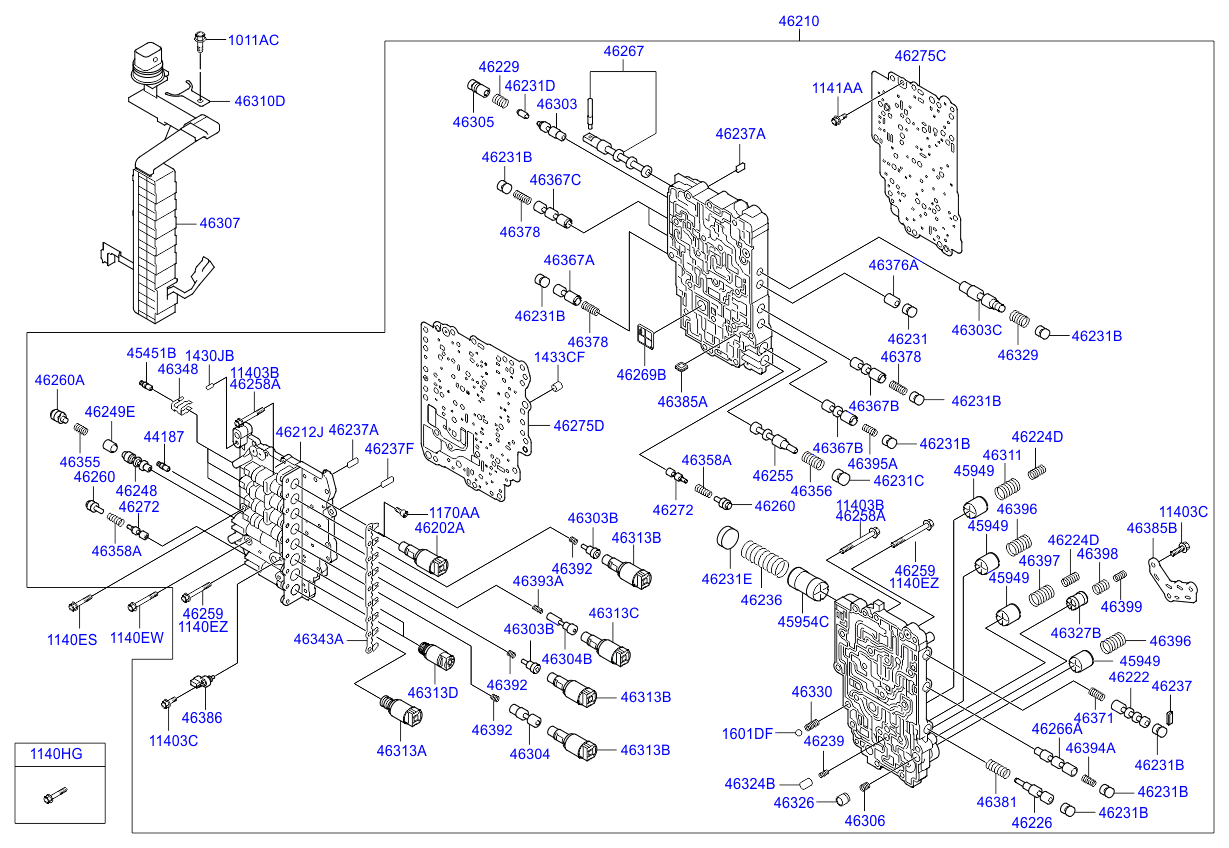 (Рабочий объем двигателя: 1600 CC - GAMMA) Клапанная коробка АКП-A/T (Рабочий объем двигателя: 2000 CC - NU) |