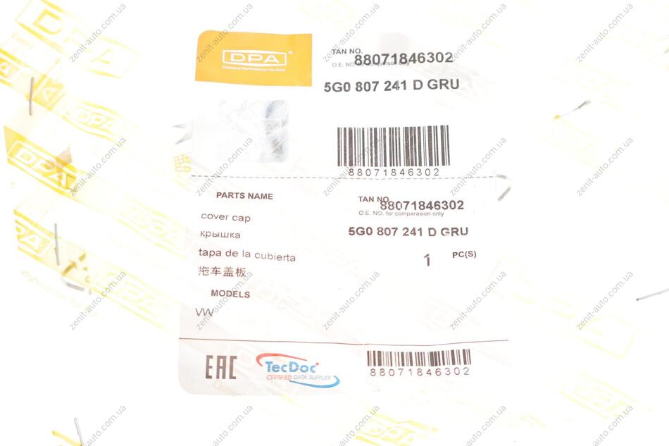 Крышка буксирной проушины передняя VW Golf (17-) DPA 88071846302