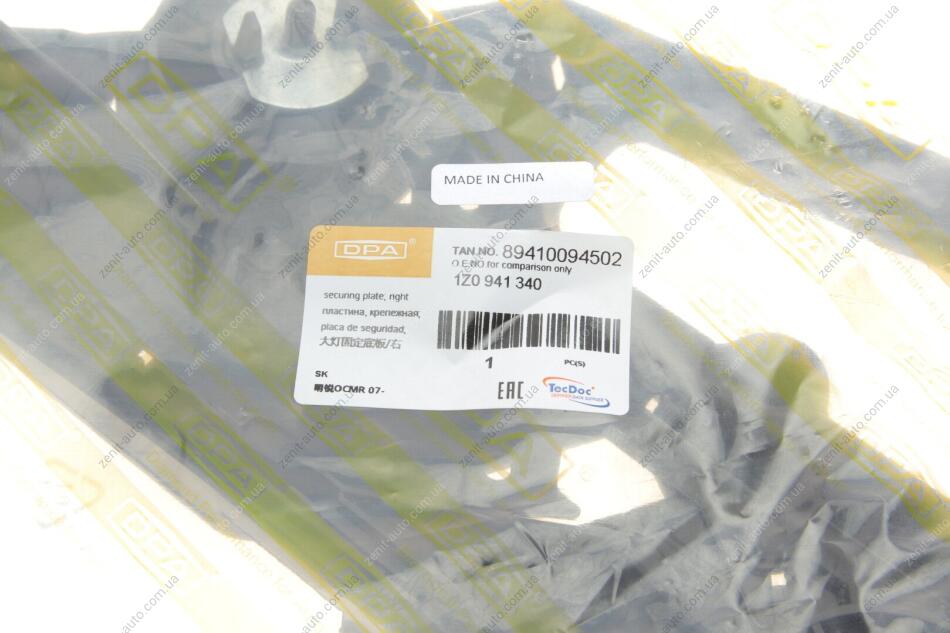 Пластина крепления фары правой Skoda Octavia II (1Z3) (04-13) DPA 89410094502