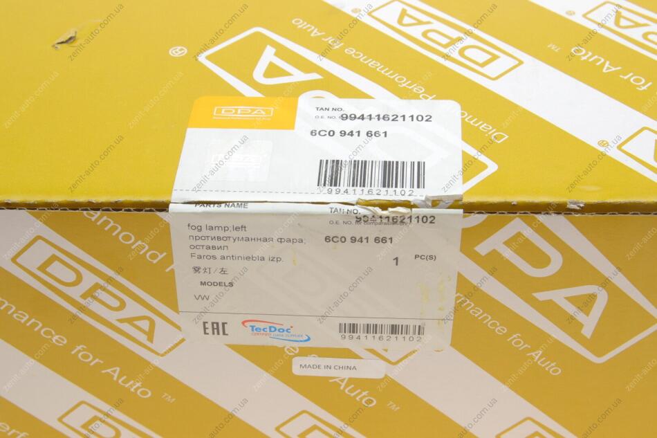 Фара противотуманная левая (галоген. под 2 лампамы) VW Polo (6R1, 6C1) (09-) DPA 99411621102