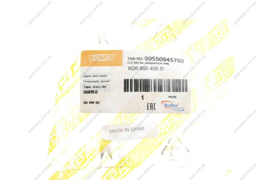 Заглушка гайки крепления поводка передней щетки стеклоочистителя VW Golf (04-14),Passat (08-15),Tiguan (08-12),T5 (06-) DPA 99550945702