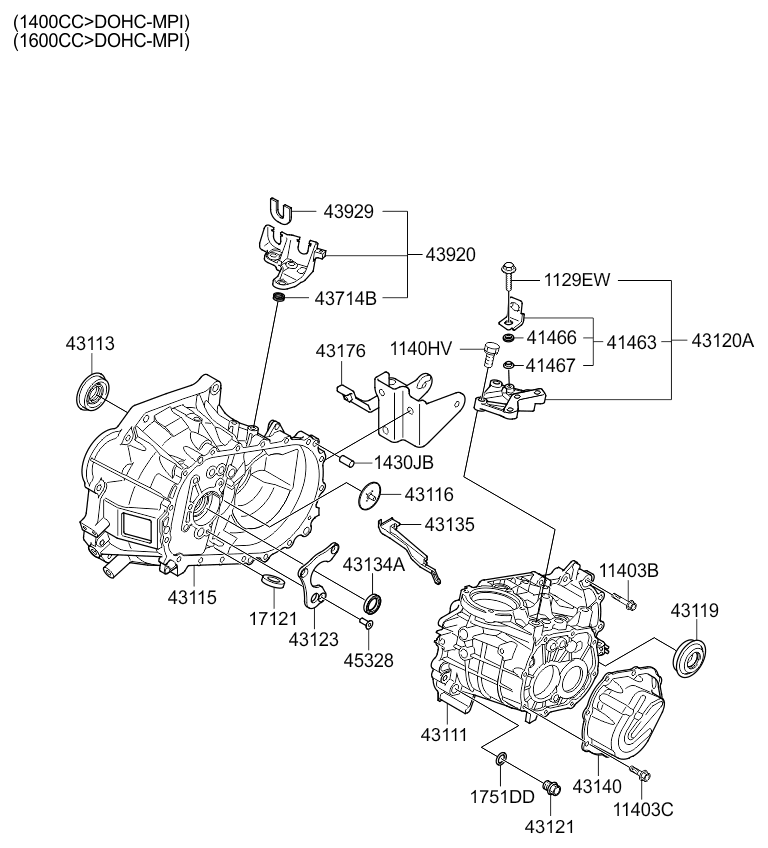 (Рабочий объем двигателя: 2000 CC)(Двигатель: T/C INTER COOLER)(Трансмиссия: 5 SPEED MT 2WD) корпус трансмиссии (Рабочий объем двигателя: 2000 CC)(Двигатель: MPI-DOHC)(Трансмиссия: 5 SPEED MT 2WD) |