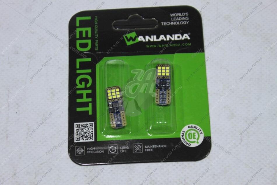 Лампа светодиодная T10 12V 2,52W 360Lm (10x27mm)(Yes canbus) (кратно 2) WANLANDA 'T10201618C