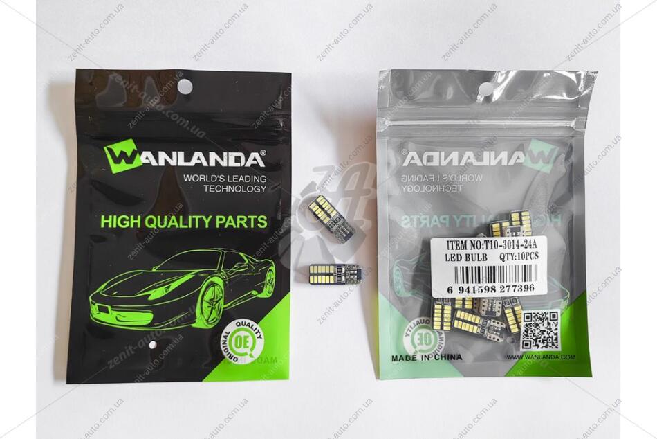Лампа светодиодная T10 12V 1,44W 480Lm (9x24mm)(No canbus) (кратно 10) WANLANDA 'T10301424A