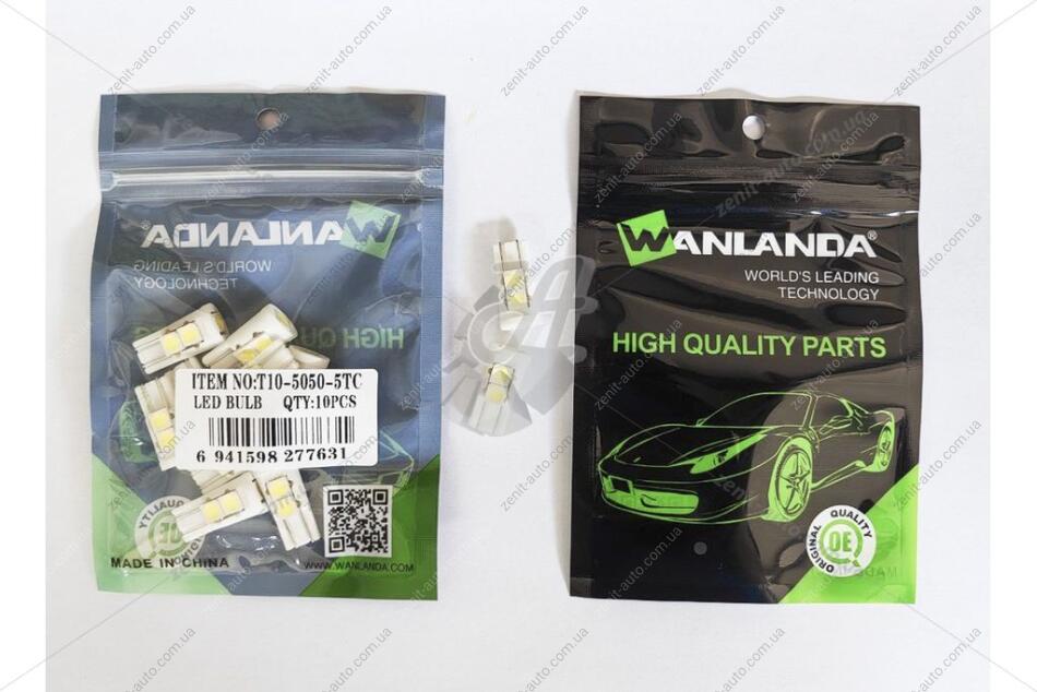 Лампа светодиодная T10 12V 1,44W 60Lm (12x24mm)(No canbus) (кратно 10) WANLANDA 'T1050505TC