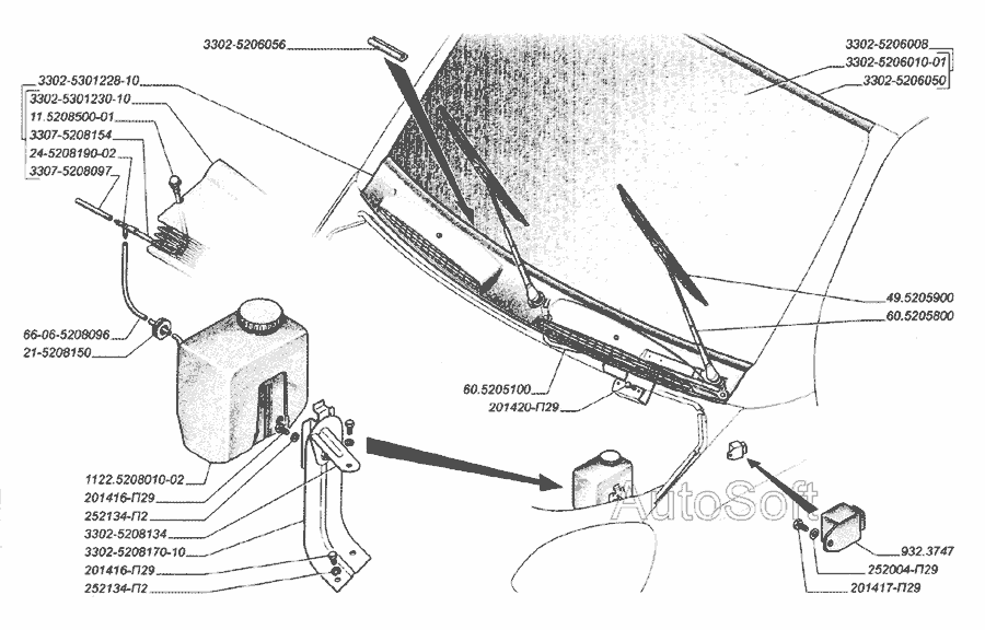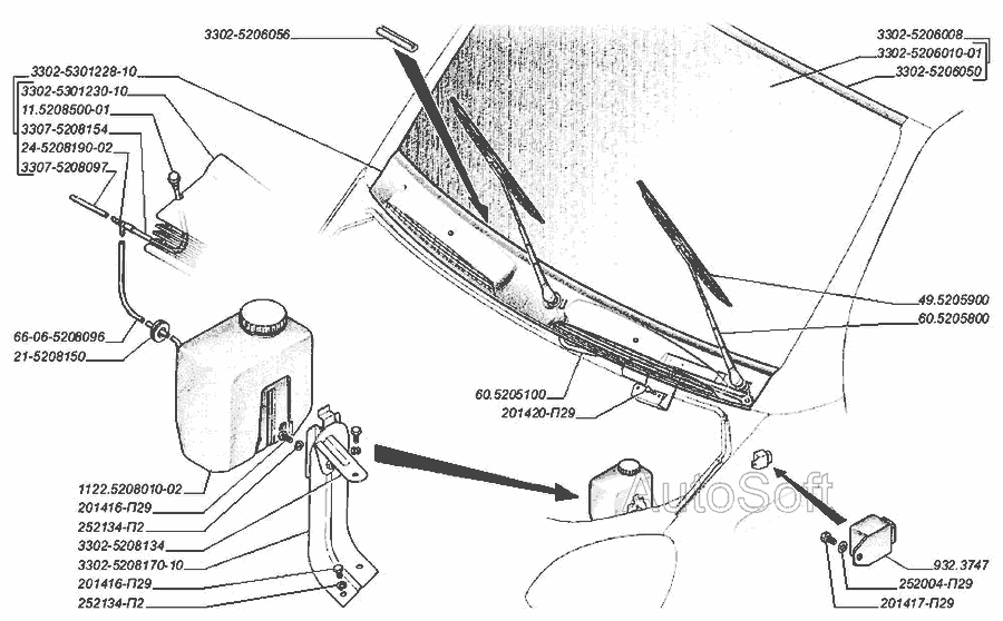 - - Детали кузова Механизм стеклоочистителя