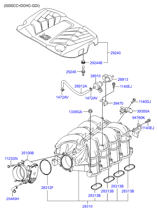 (Робочий об'єм двигуна: 3000 CC - LAMBDA 2) колектор випускний двигун (Робочий об'єм двигуна: 2400 CC - THETA 2) |