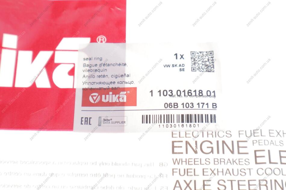 Сальник колінвала задній з кришкою Skoda Octavia (97-13)/VW Golf (98-), Jetta (06-11), Passat (97-11), Polo (00-02) Vika 11030161801