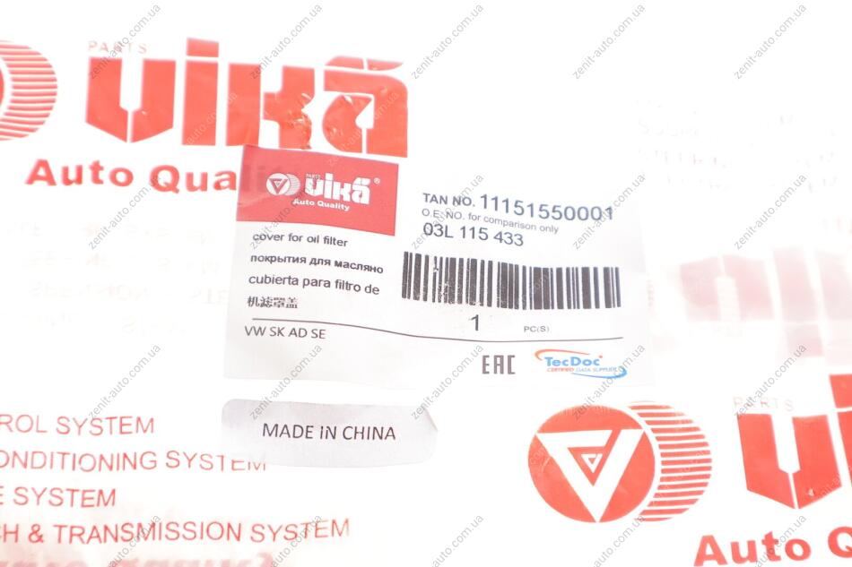Кришка масляного фільтра Skoda Octavia (09-13), Fabia (11-15) / VW Golf (09-14), Jetta (06-14), Passat (09-15), Tiguan (08-), T5 (10-15)) Vika 11151550001