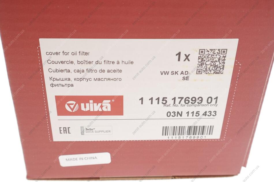 Кришка масляного фільтра Skoda Kodiaq (17-), Octavia (13-17, 18-)/VW Golf (13-17), Jetta (15-), Passat (13-15), Tiguan (12-17) Vika 11151769901