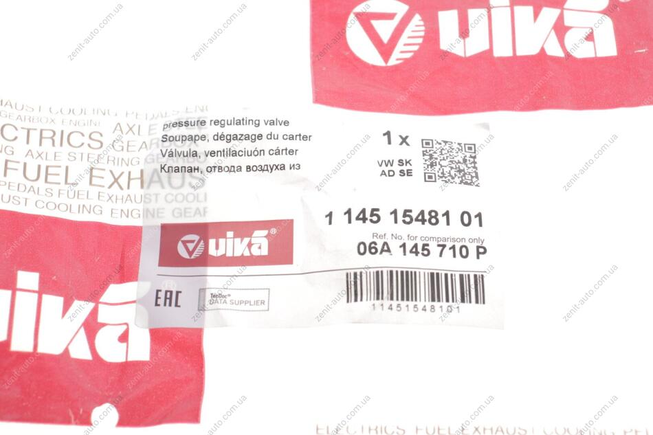 Клапан регулювання тиску / VW Passat (97-05), Polo (05-10), Sharan (06-10) / Audi A4 (99-08), A6 (02-05), TT (03-06) Vika 11451548101