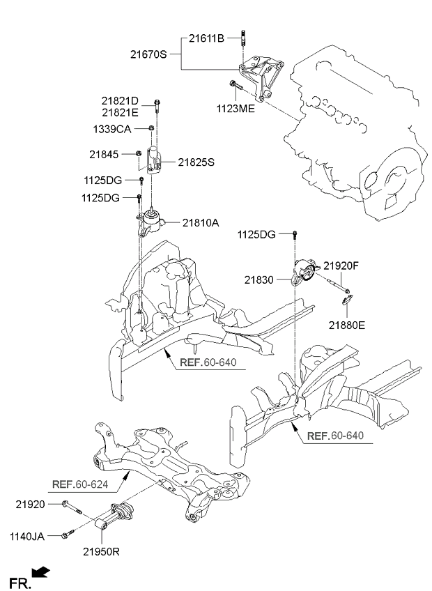(Робочий об'єм двигуна: 2000 CC - NU) Підвіска двигуна та коробки передач Підвіска двигуна та коробки передач (Робочий об'єм двигуна: 1600 CC - GAMMA) |