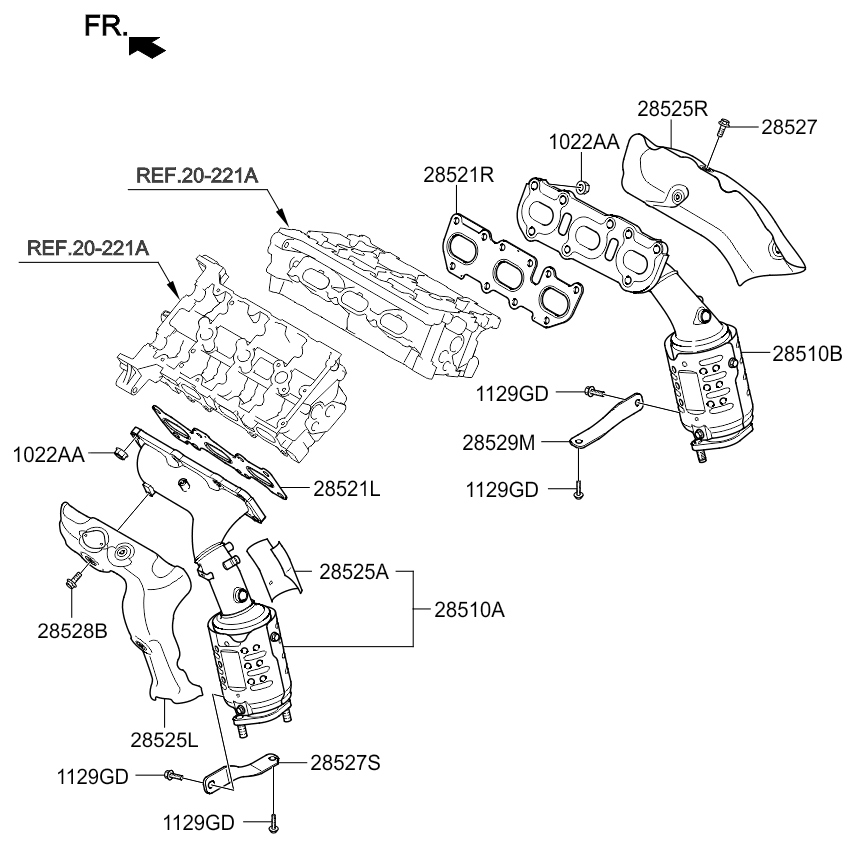 Прокладка колектора випускнго ліва 3.0 / 3.3 / 3.5 LAMBDA Mobis Hyundai/Kia/Mobis 28521-3C702