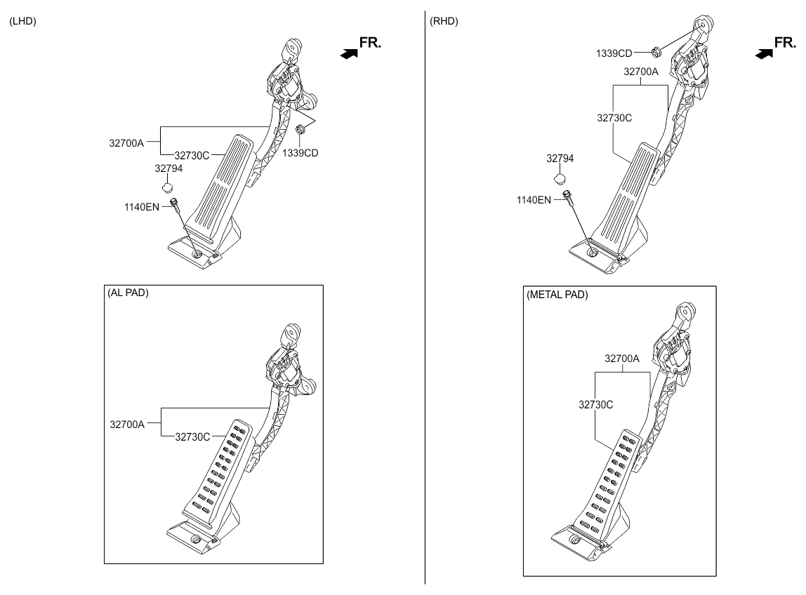 Педаль газа (метал. накладка) Elantra (11-), I-30 (15-) (32700-A6110) Mobis Hyundai/Kia/Mobis '32700A6110