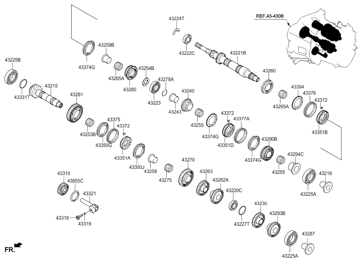 (Робочий об'єм двигуна: 1600 CC - GAMMA) (Двигун: DOHC - MPI) Шестерні механічної КП (02/02) (Робочий об'єм двигуна: 1600 CC - GAMMA) (Двигун: DOHC - MPI) |