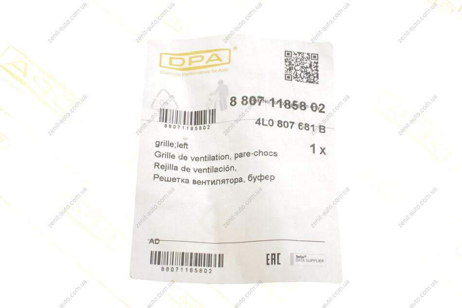 Решітка протитуманної фари лівої Audi Q7 (10-15) DPA 88071185802