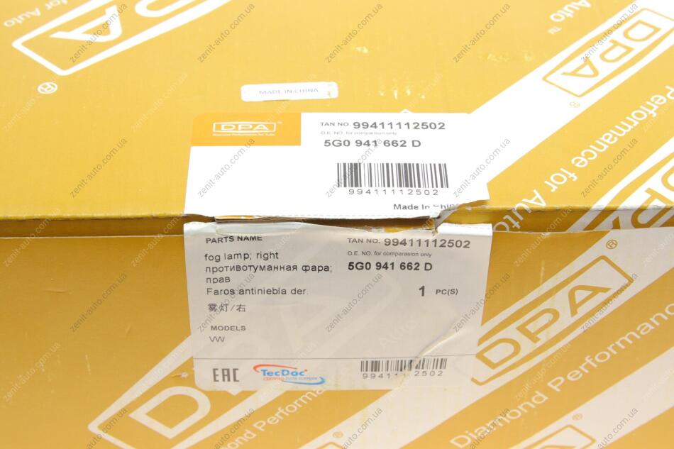 Фара протитуманна права VW Golf (13-) DPA 99411112502